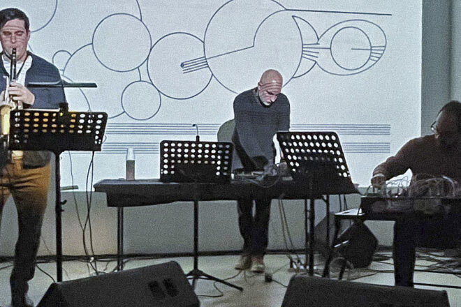 Over time, he shared the concept with Doxas, drawn together by the score’s abstract structure and expressive potential. But the opportunity to explore it never quite materialized—until a recent tour brought all three musicians together.